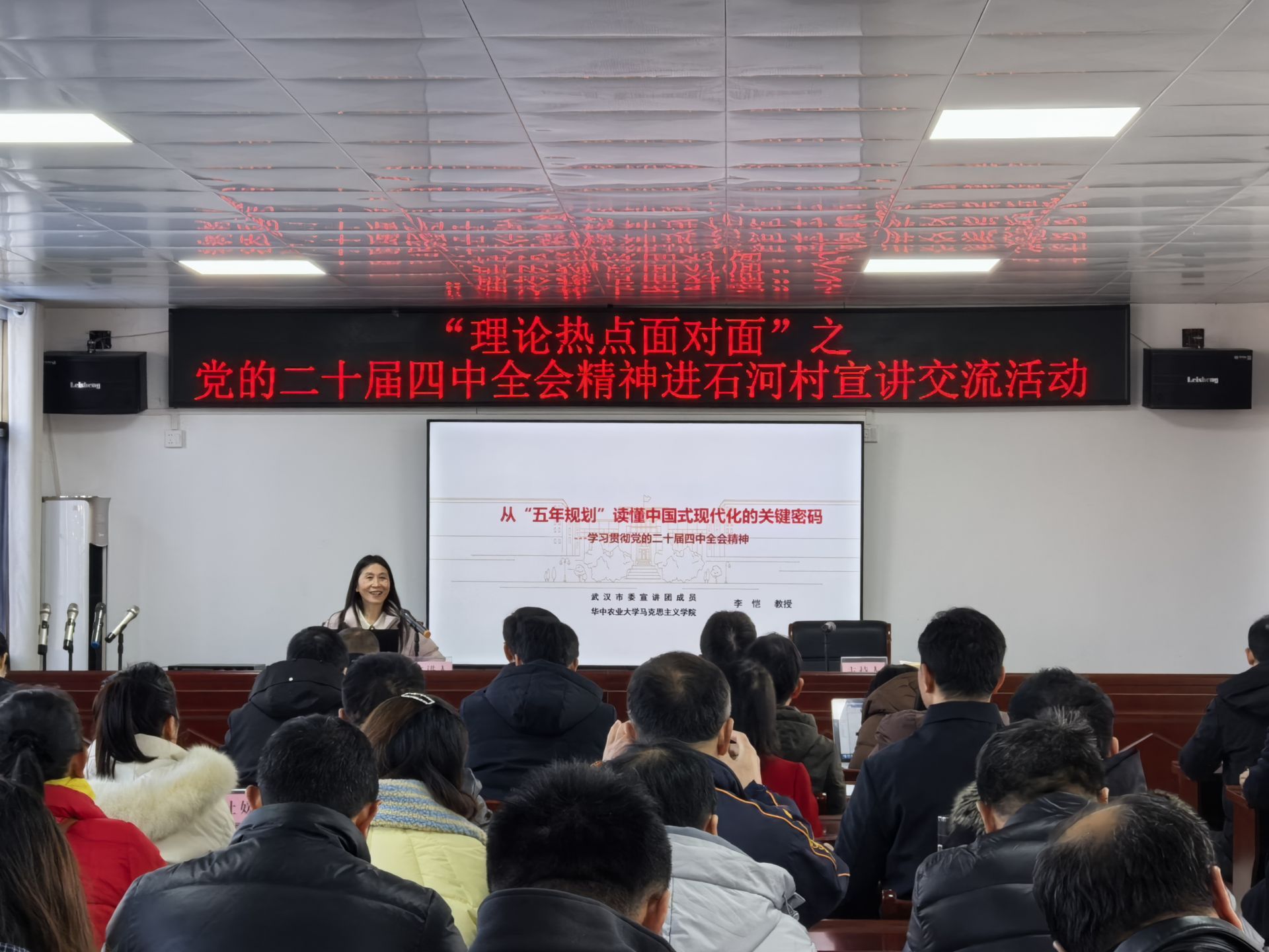 在新洲区三店街石河村,李恺以《从“五年规划”读懂中国式现代化的关键密码》为主题,聚焦“五个讲清楚”,详细解读了《中共中央关于制定国民经济和社会发展第十五个五年规划的建议》。她动员参会人员积极学习贯彻党的二十届四中全会精神,以“十五五”规划为目标,锚定湖北省建设定位和武汉市发展目标,结合具体工作找到自身立足点,为实现中国式现代化的宏伟蓝图贡献力量。