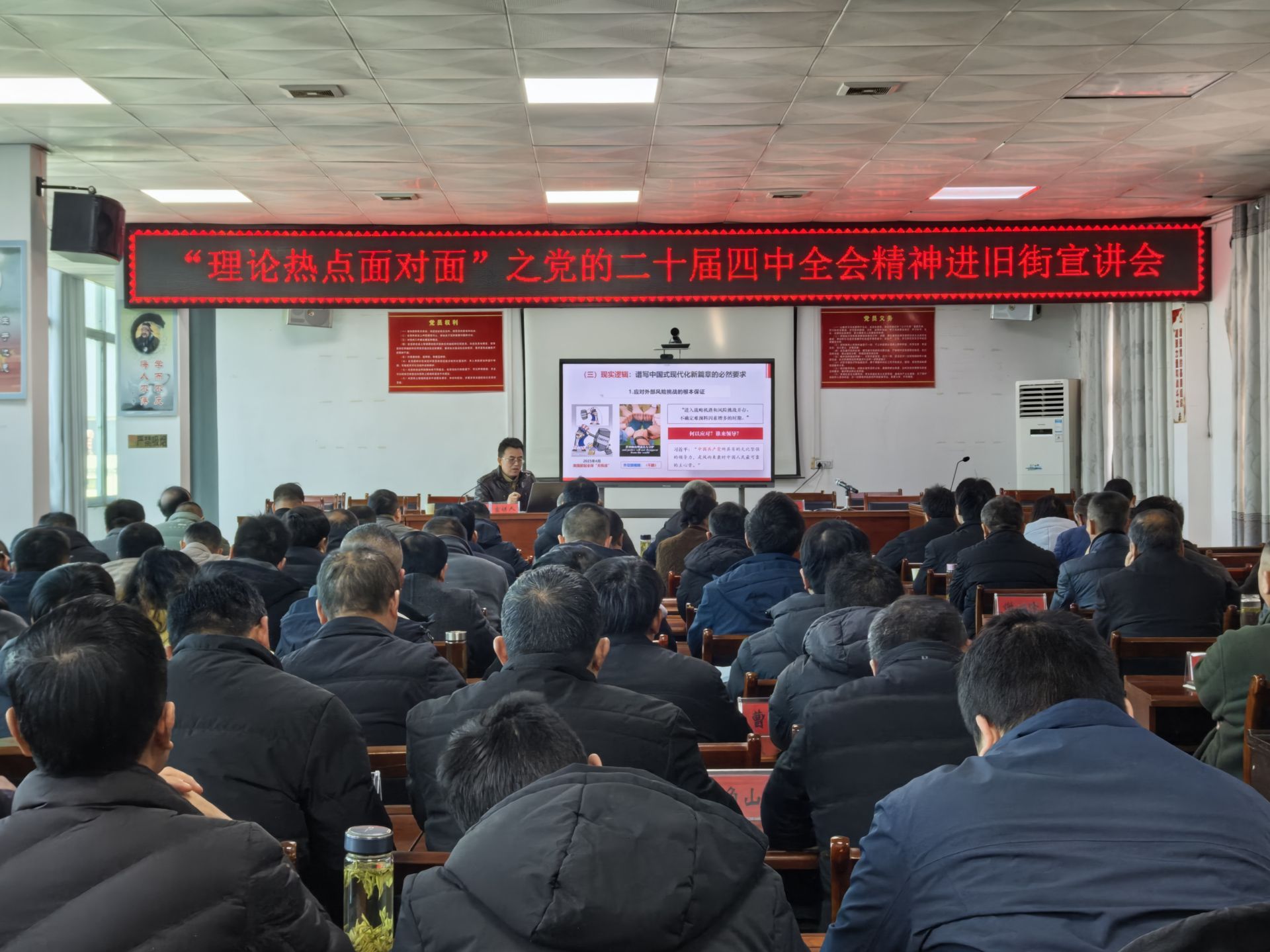 在新洲区旧街街道办事处,刘三宝以《坚持和加强党中央集中统一领导 把党的自我革命进行到底》为主题,从坚持和加强党中央集中统一领导的理论逻辑、历史逻辑和现实逻辑出发,生动讲解全面从严治党的重要意义和党的自我革命的深刻内涵。他谈到,作为基层党员干部,要将党的创新理论入党入心入行,严于律己,坚持底线思维,算清人生的“六笔账”,思想不松懈,心中有敬畏。