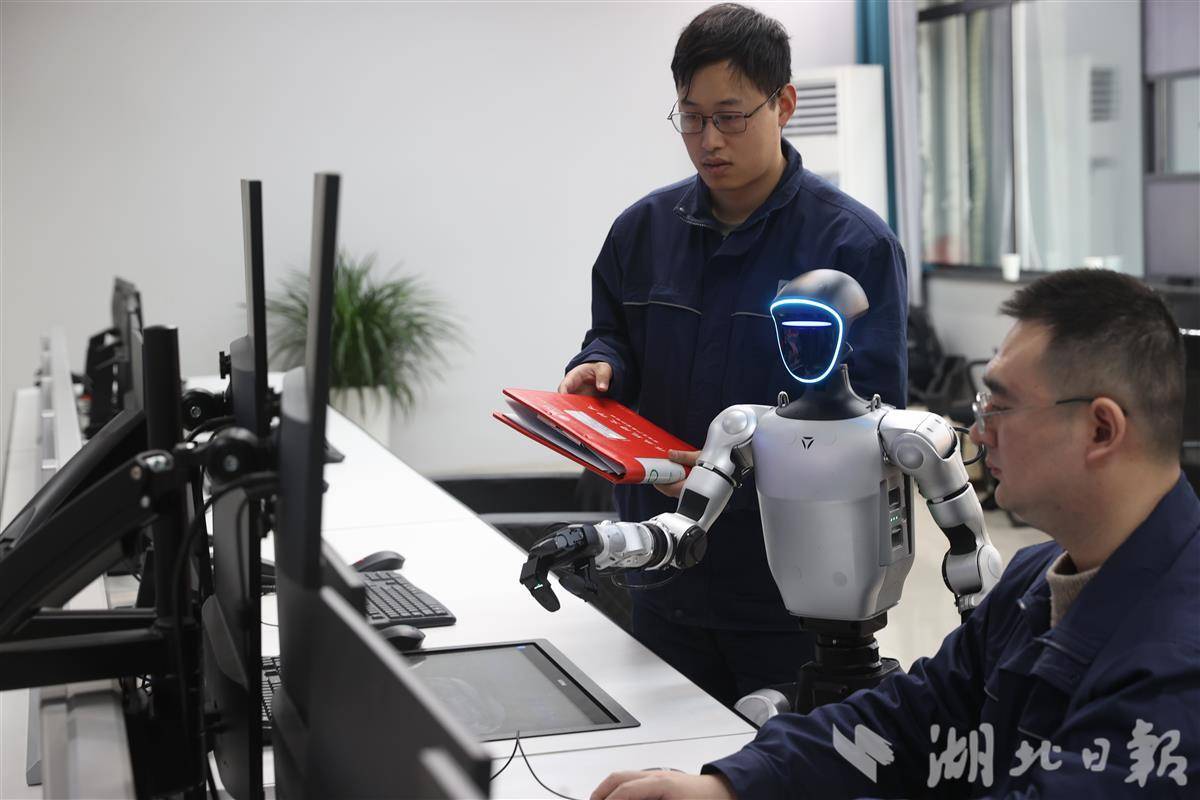12月26日,在国网襄阳供电公司江北集控站监控大厅,一台搭载43个灵活关节的人形机器人正专注的“盯屏”。