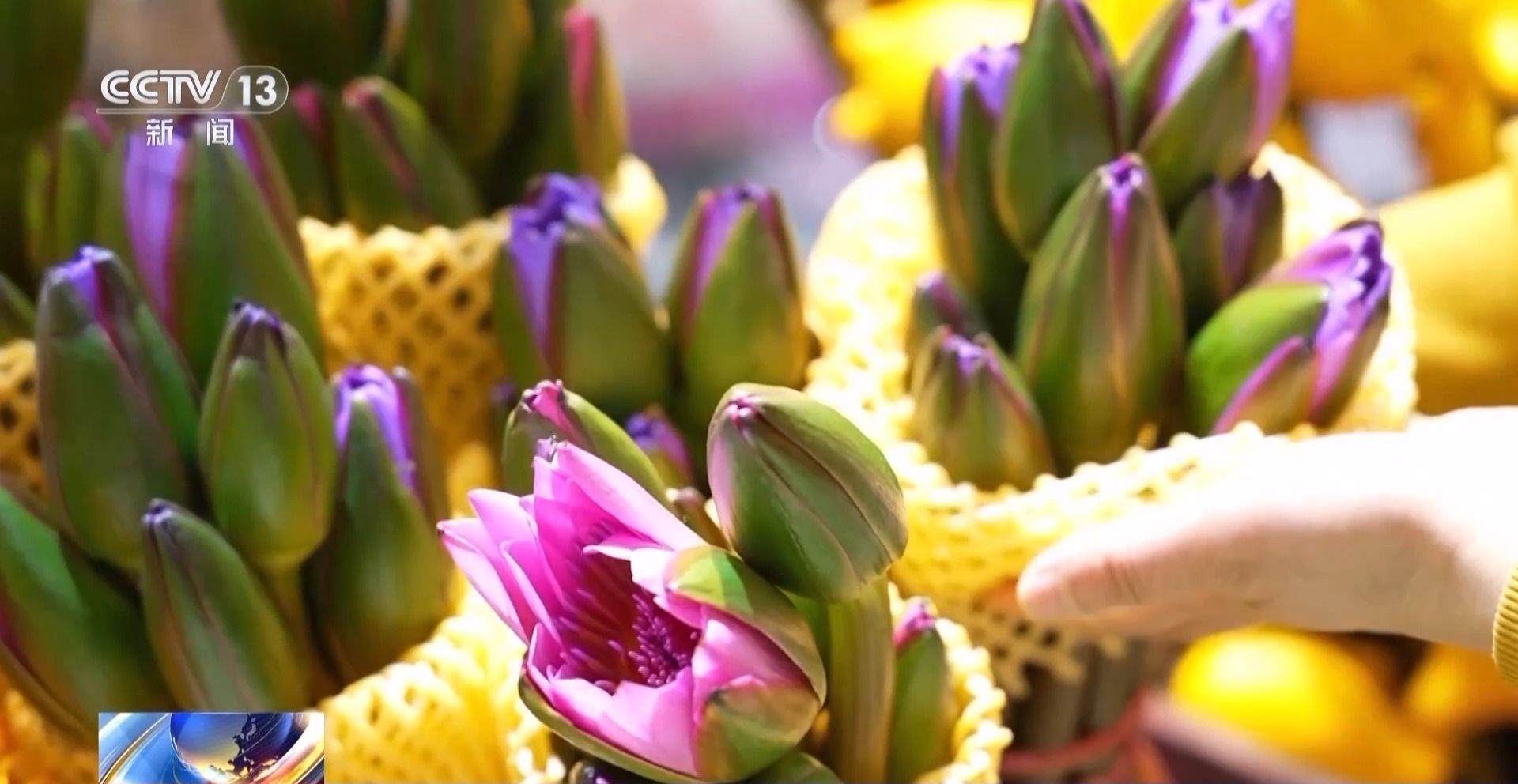 商户 刘强:我们从节前就开始大量备货,货量可能比往常要超个百分之三四十。品种也多了,像以往平时都是以红花为主的,现在今年花色的就比较多。
