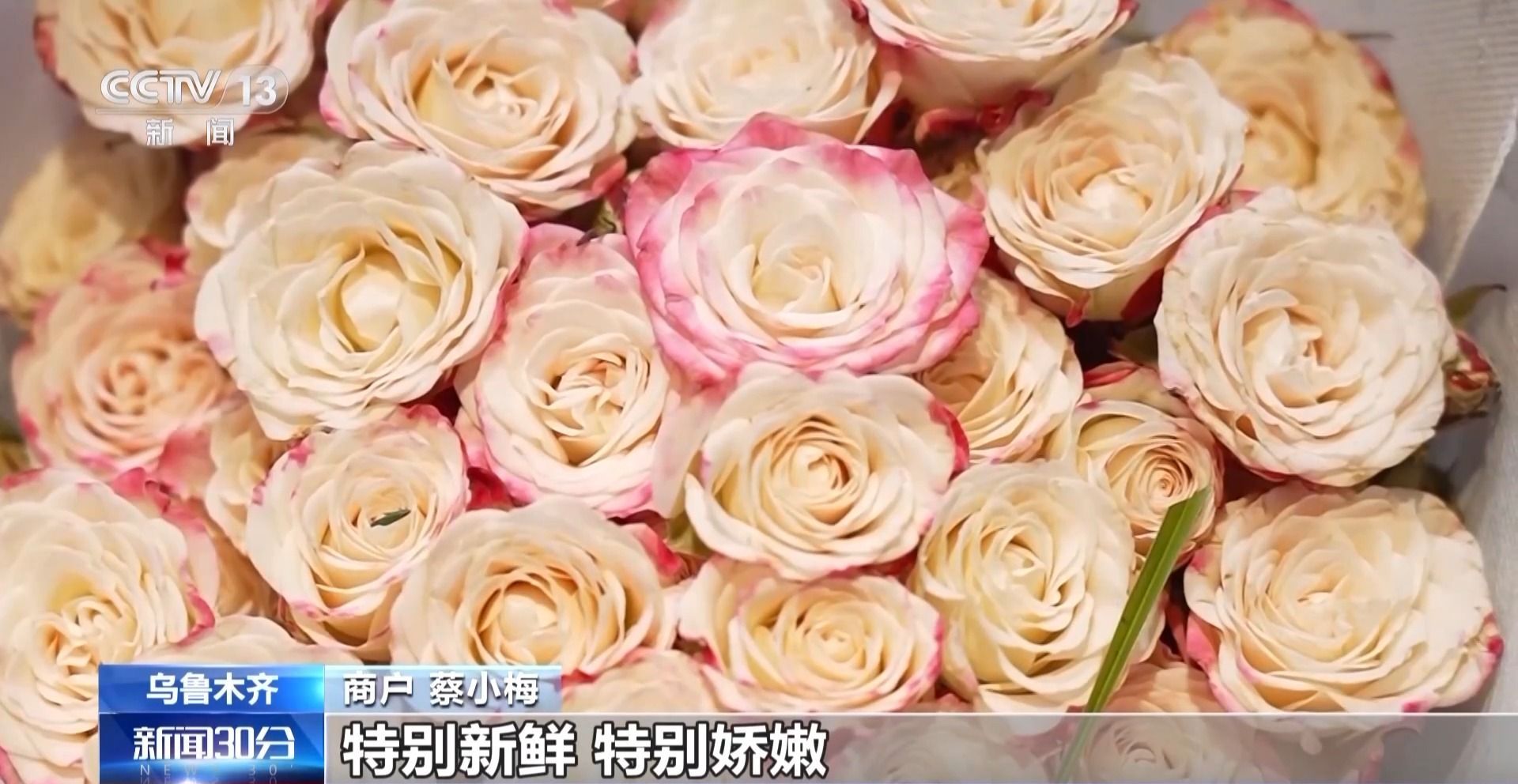 在乌鲁木齐天山国际机场,近期每天都有飞机搭载着各类鲜花从云南等地飞来,虽然相隔三千多公里,但鲜花一路锁鲜到达新疆的花市不到24小时。在新疆最大的鲜花集散地,市场里品种肉眼可见的丰富了。