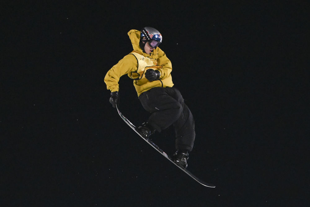 ↑12月6日,中国选手苏翊鸣在2025-2026赛季国际雪联单板及自由式滑雪大跳台世界杯北京站单板滑雪大跳台男子组决赛中完成第一跳。新华社记者 陶希夷 摄