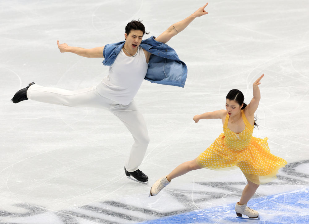 ↑9月19日,中国选手王诗玥(右)/柳鑫宇在2025年北京国际滑联花样滑冰资格赛冰舞韵律舞比赛中。最终,他们为中国队赢得冬奥会冰舞项目入场券。新华社记者 张晨霖 摄