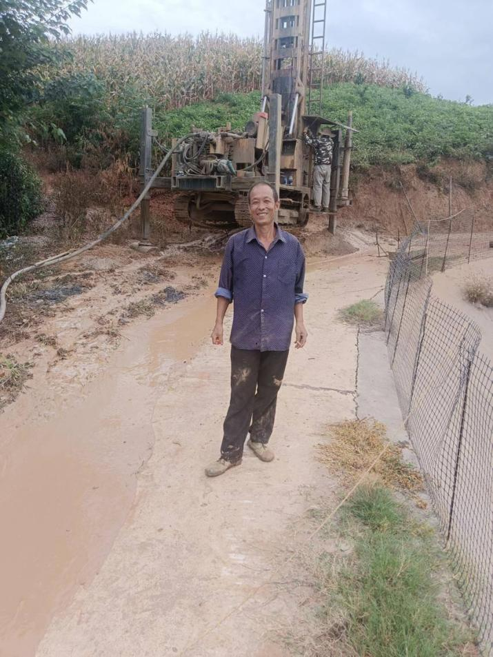 温志奎站在第一口机井施工现场