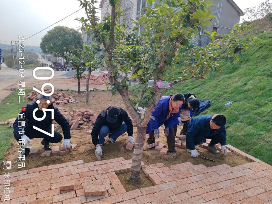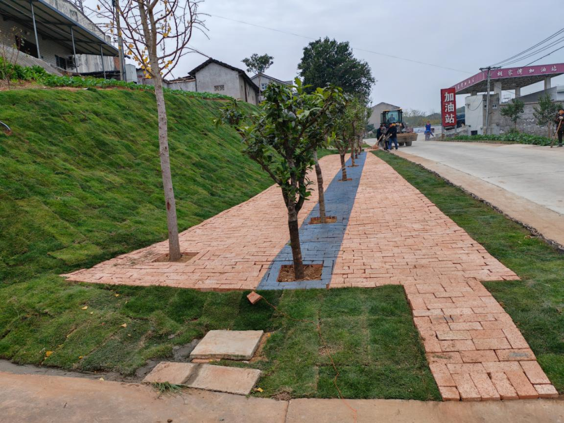 12月,由党员和群众组成的志愿者队伍共同铺设红砖