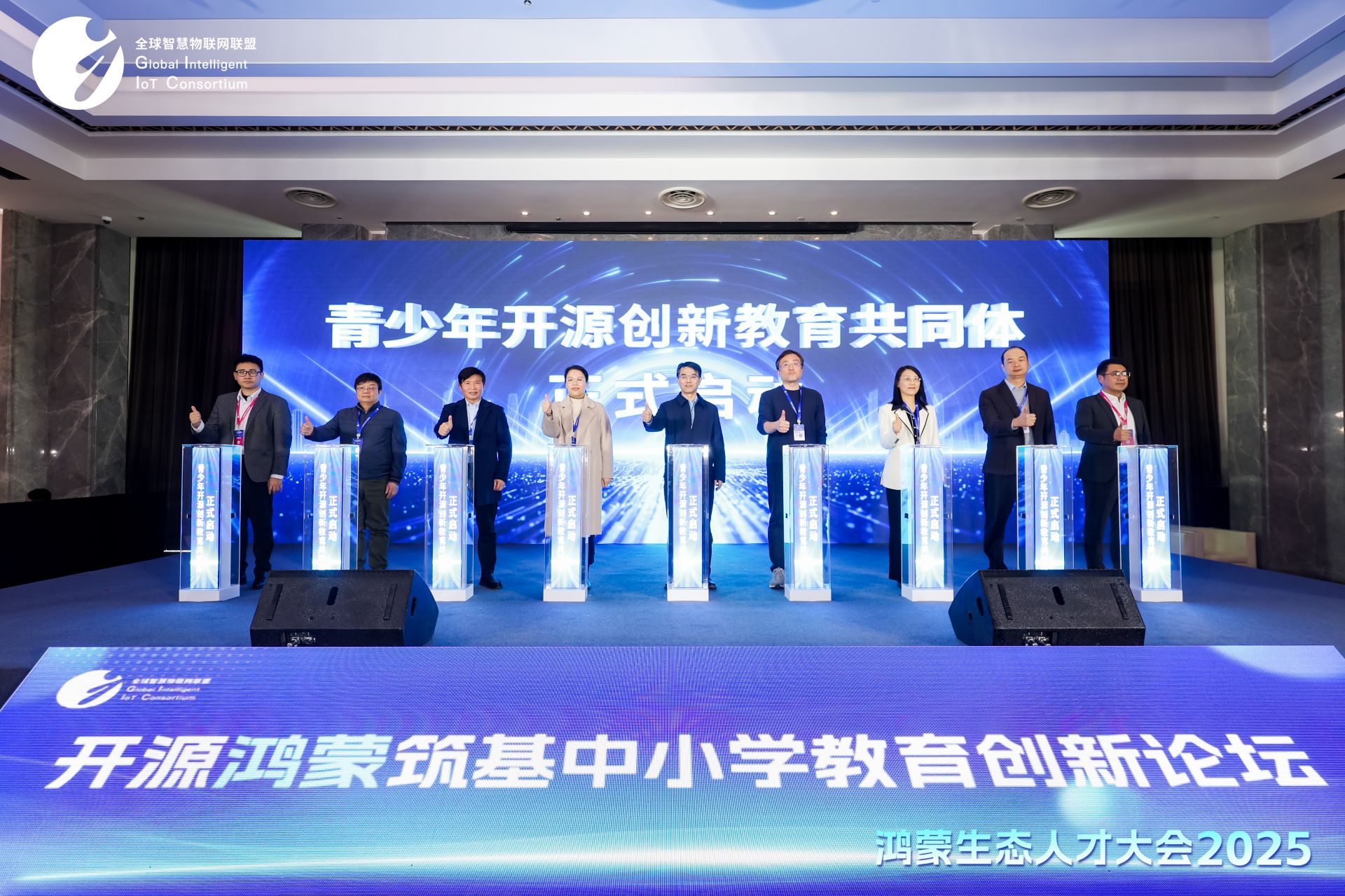 本次论坛由全球智慧物联网联盟(GIIC)主办,鸿蒙生态服务(深圳)有限公司、鸿蒙生态(武汉)创新中心、江苏润和软件股份有限公司、江苏润开鸿数字科技有限公司联合承办。