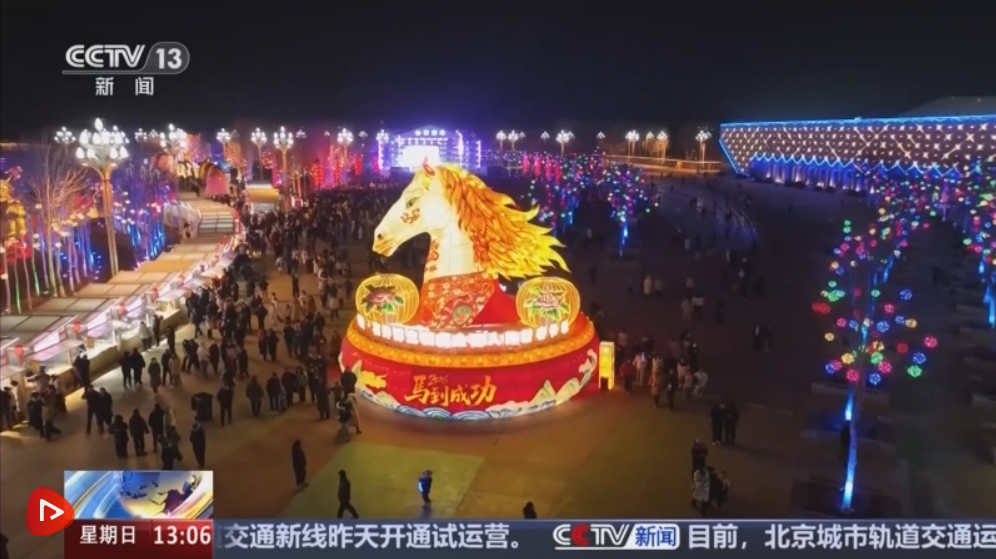 走进灯会现场,五大主题灯区、百余组大型主题灯组精彩亮相,高达13米的“天马腾霄”灯组气势恢宏,通过灯光造型现场还原,再配合数字孪生技术打造的精准光影效果,柔美呈现灵动姿态,为游客带来身临其境的沉浸式体验。