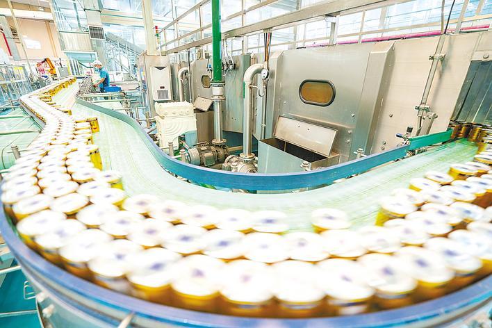 咸宁高新区的红牛维他命饮料(湖北)有限公司,智能产线全开,平均1分钟生产600罐红牛饮料。(湖北日报全媒记者 魏铼 摄)