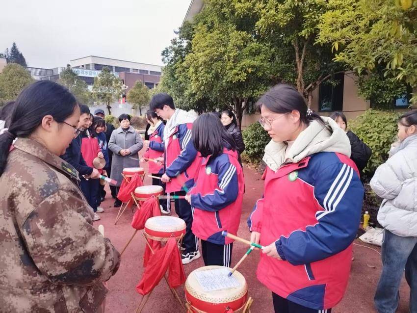 教学活动中,李春国团队凭借娴熟的技艺和生动的讲解,从三棒鼓的历史渊源、表演技巧、节奏把控等方面进行细致指导。传承人手持鼓棒、腰系鼓身,时而抛接棒鼓默契配合,时而说唱演绎韵味悠长,精彩的示范表演瞬间点燃了现场氛围,同学们纷纷踊跃参与,认真模仿动作要领,在一招一式、一鼓一唱中沉浸式体验非遗艺术的独特魅力,进一步丰富了学校的校园文化生活,搭建了非遗传承与校园教育的桥梁。