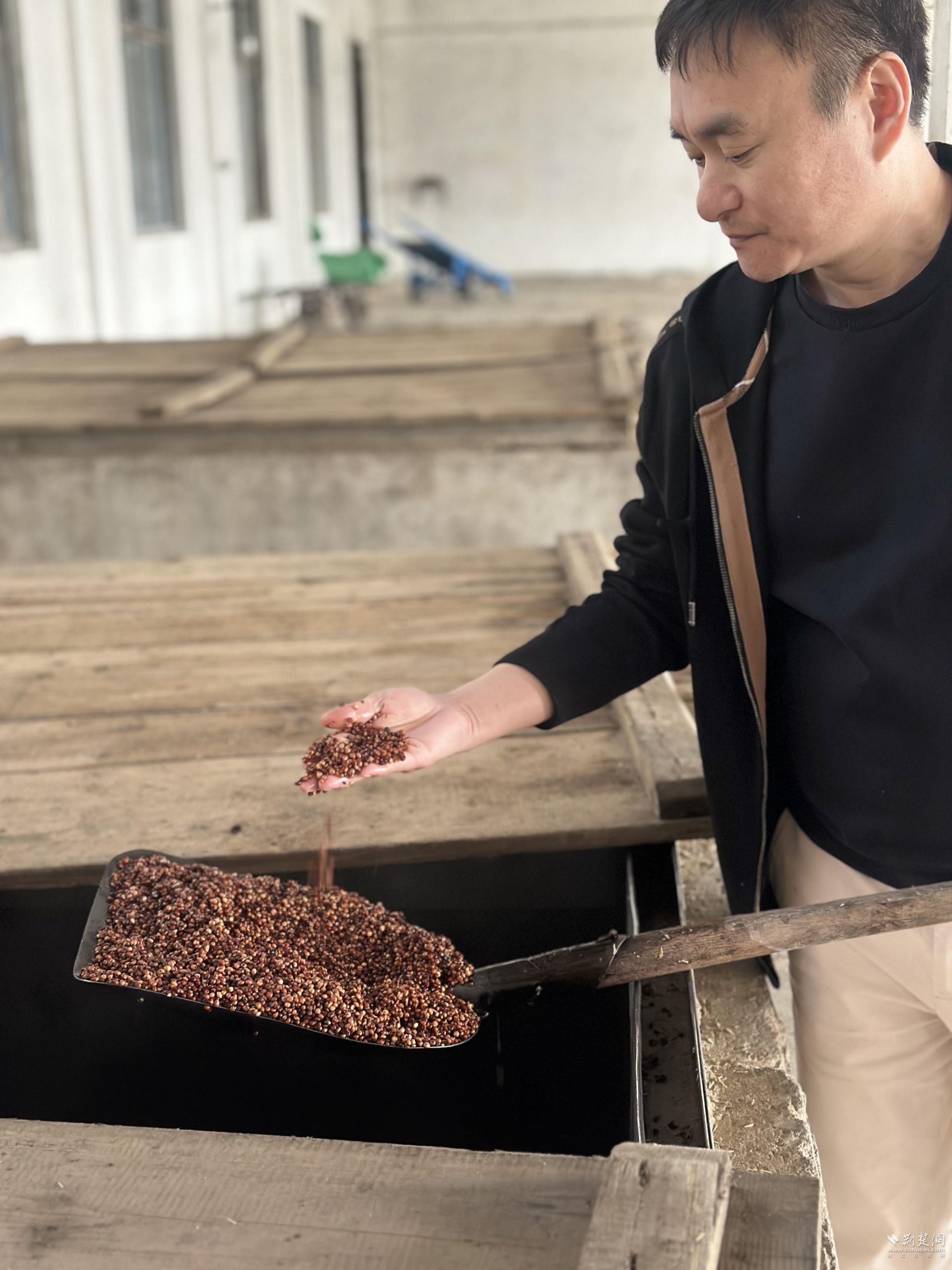 凌晨两点,程集镇姚集村的监利县芳良酒业有限公司依旧灯火通明。作为古法酿酒传承人,总经理张辉早已带领工人们开启了一天的忙碌。“从浸粮、初蒸、拌曲,到发酵、蒸馏等核心工序环环相扣,十天酿造周期里,我们每天凌晨开工、上午收工,顺应的是粮食转化的自然节律。”