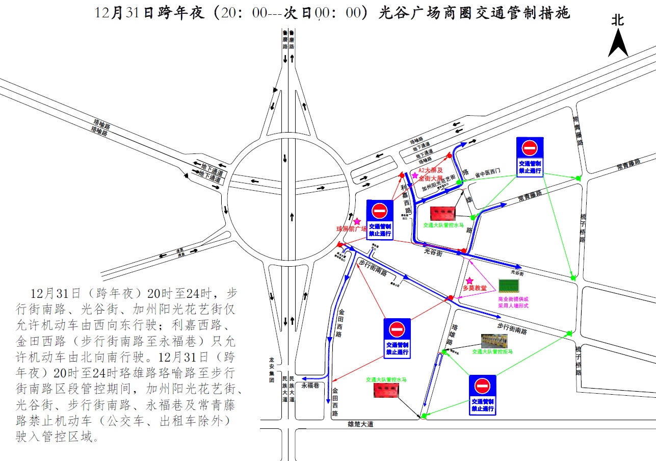 周边500米内有3大公交枢纽:民族大道光谷广场站、珞喻路光谷广场站、珞雄路站,跨年夜会加密发车频次。