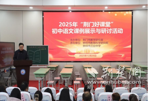荆楚网(湖北日报网)讯(通讯员 黄婉舲)近日,2025年“荆门好课堂”初中语文课例展示与研讨活动在钟祥市兰台中学举行。本次活动以“坚守文本解读本位,探索数智赋能教学”为主题,荆门各县(市、区)初中语文教研员、教研组长、备课组长及骨干教师共160余人汇聚在古老的兰台山,共赴一场贯通古今、融合智慧的语文教学盛宴。