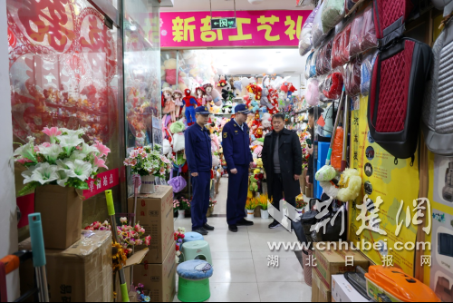 消防监督员深入小商品市场进行消防安全检查。通讯员供图