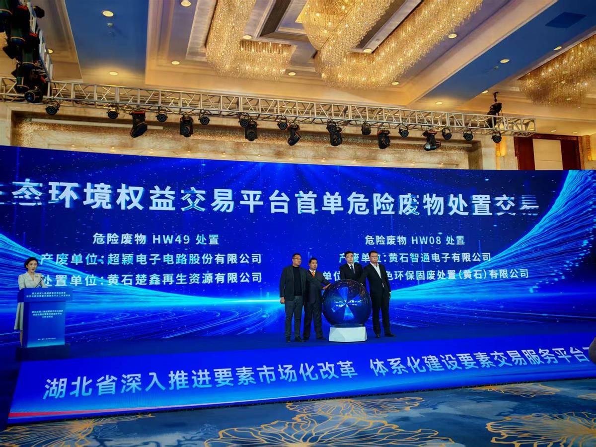 生态环境权益交易平台在发布会现场完成首单危险废物处置交易。(湖北日报全媒记者戴文辉摄)