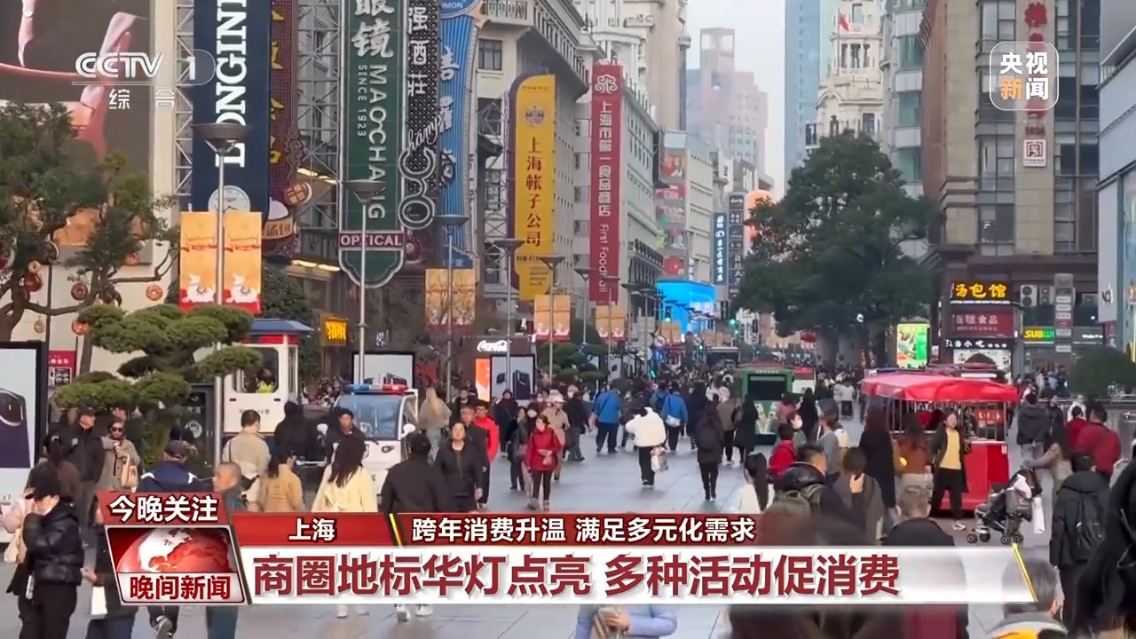 在上海,各大地标商圈纷纷换上节日装饰,用华灯装点出新年的节日氛围。南京路等商圈为了迎接元旦假期,发放亿元消费券,并推出了商场延时营业、整点促销等优惠活动。上海传统地标豫园,一年一度的新春灯会已进入火热搭建阶段。