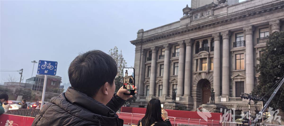 12月30日下午17:30左右,江汉关钟楼前已聚集起小部分人群。