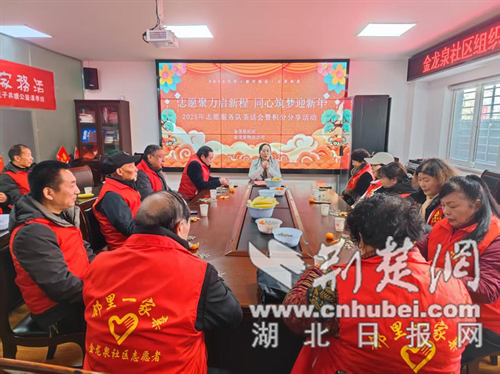 荆楚网(湖北日报网)讯(通讯员 朱惊荆)新年将至,暖意融融。荆门市东宝区金龙泉社区携手金龙泉物业公司、美佳物业公司,组织坚守公益的志愿者家人们举办了满载感动与期许的“金邻解忧”志愿服务座谈会。红马甲汇聚一堂,共忆2025年的暖心点滴,共绘2026年的志愿蓝图。
