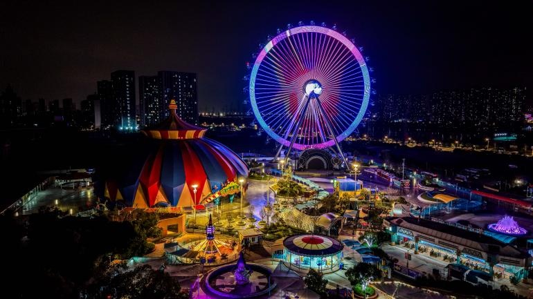 武汉极地海洋公园以璀璨花灯点亮新年。全园以“海洋非遗”为主题,打造15米巨型银翼飞马、十二生肖机甲、奇趣海洋生物等华丽大型灯组,0点倒数后全园亮灯。园区的“楚天之眼”摩天轮在跨年夜20:00—24:00限时免费,游客们还有机会飞上云端、在空中跨年。