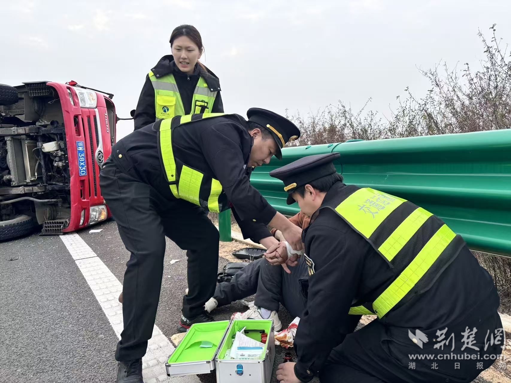 荆楚网(湖北日报网)讯(记者张赛赛 通讯员吴天)12月31日14时35分,S4214武红高速高桥收费站匝道处上演惊险一幕,一辆小型货车失控侧翻。接到报警后,湖北省交通运输综合行政执法总队高速公路路政执法三支队七大队迅速响应,展开了一场与时间赛跑的紧急救援。