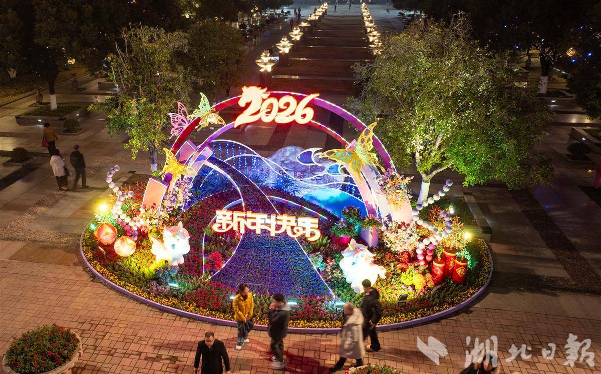 12月30日,武汉汉口江滩三阳广场,马年主题灯彩璀璨点亮,流光溢彩氛围感拉满,吸引众多市民游客打卡拍照、提前感受新年氛围。