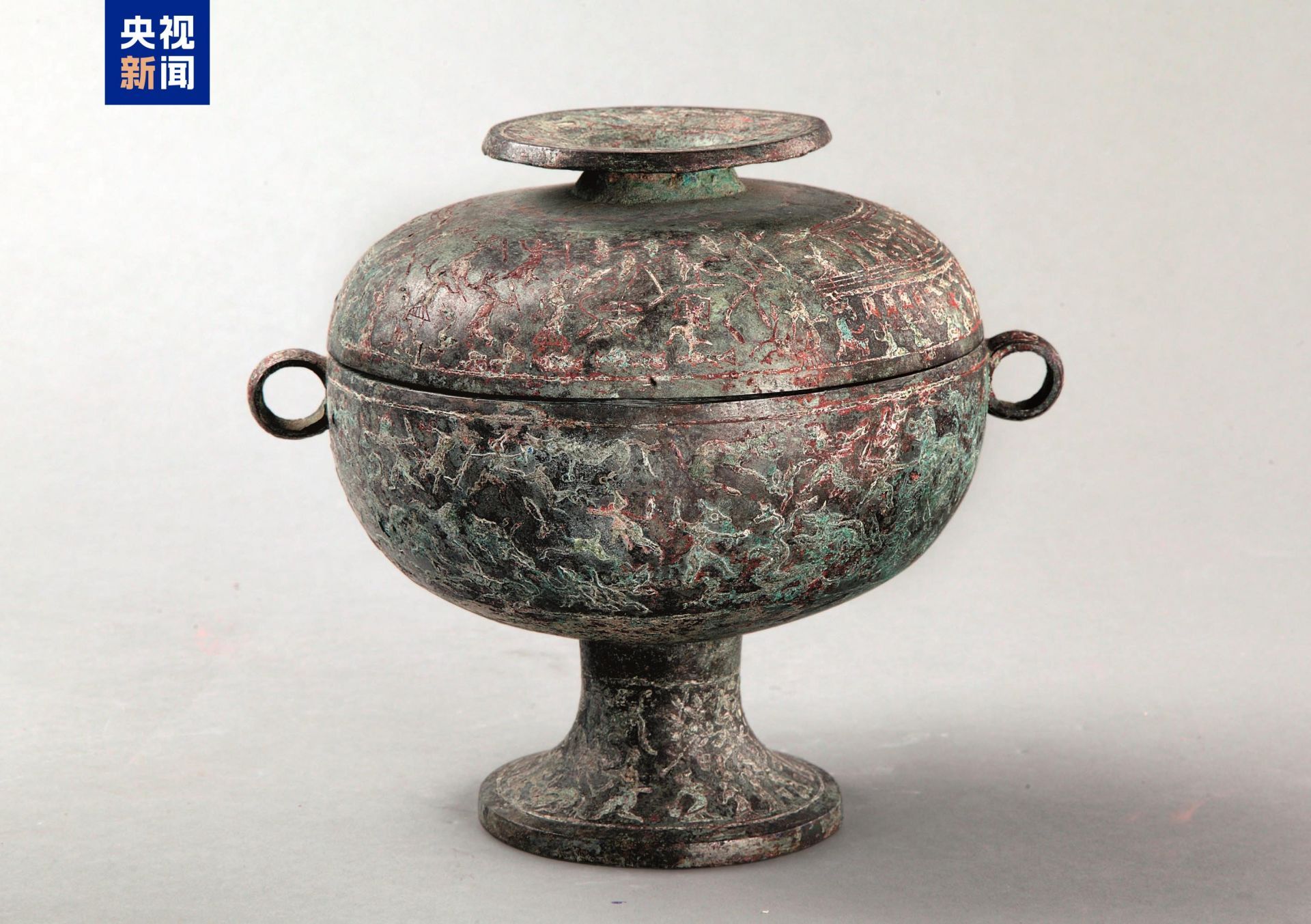 △战国 狩猎宴乐图铜盖豆 河北省文物考古研究院藏 点击图片了解更多