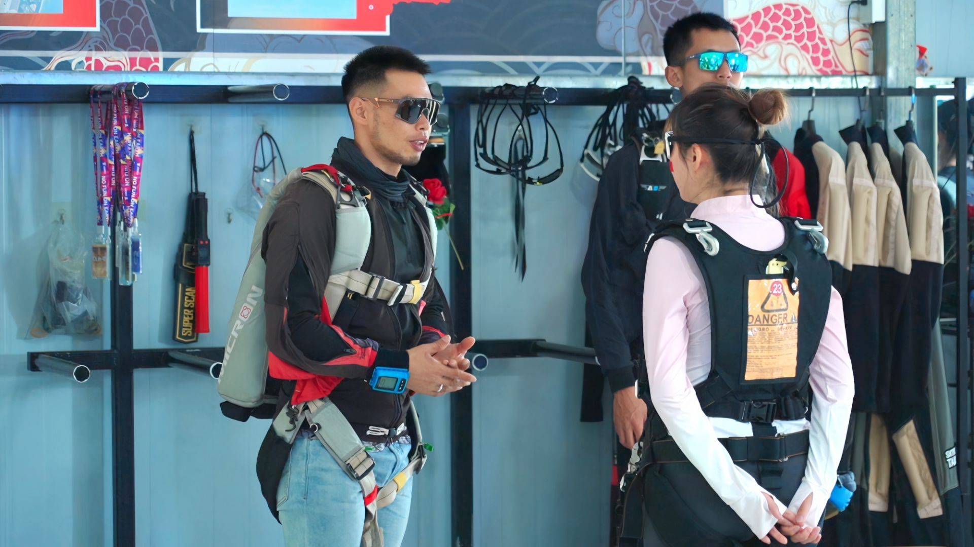 记者体验高空跳伞(央广网记者 陶淦 摄)