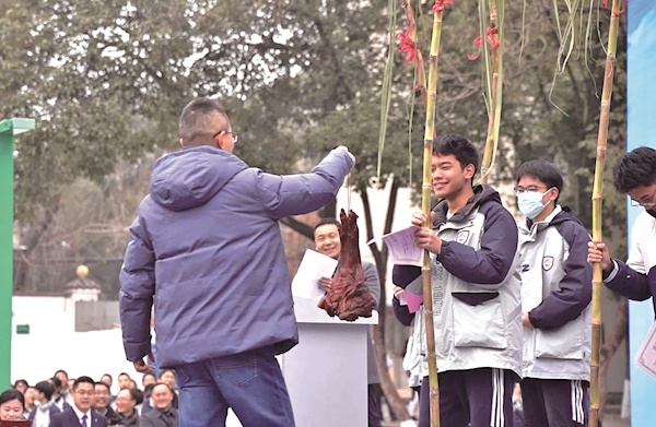 楚天都市报极目新闻讯(记者丁伟)2025年12月30日,四川绵阳南山中学举办活动,一名连续5次考试都取得进步的高三学生获奖一个腊猪腿、一根甘蔗和全市景点门票。