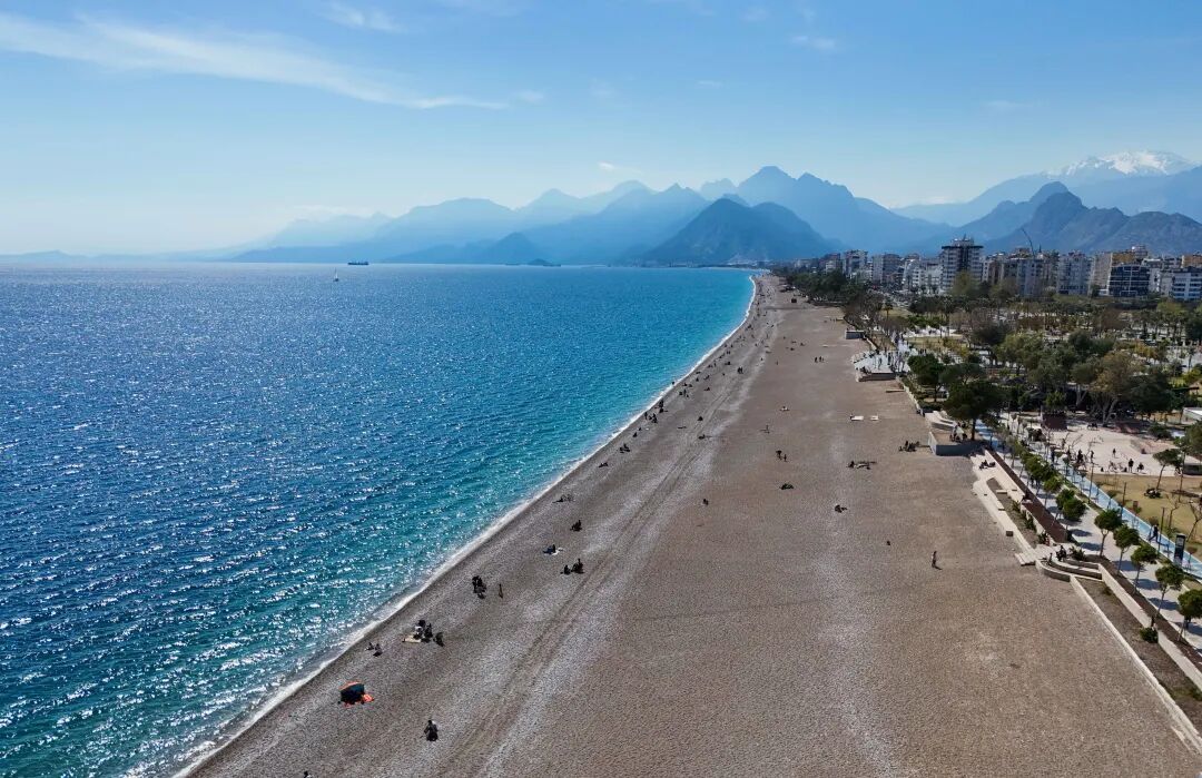这是在土耳其安塔利亚拍摄的一处沙滩(无人机照片)。新华社记者 刘磊 摄