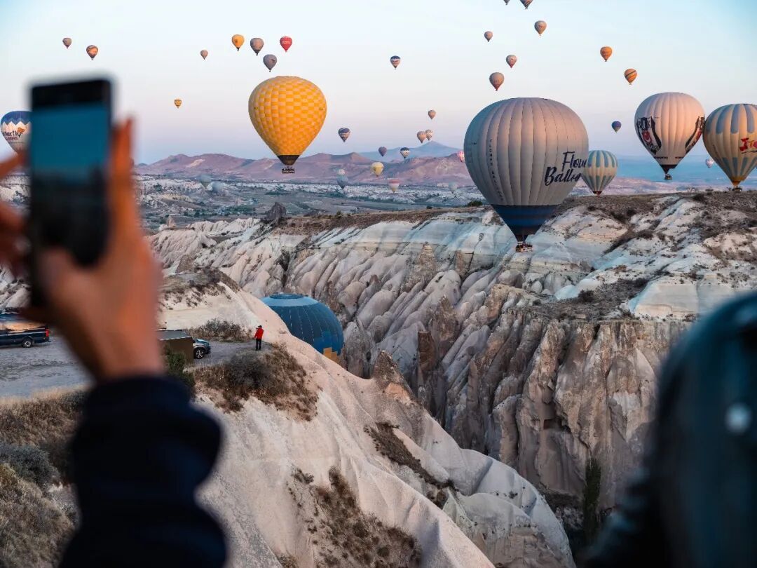 这是在土耳其卡帕多基亚拍摄的热气球。新华社记者 李木子 摄