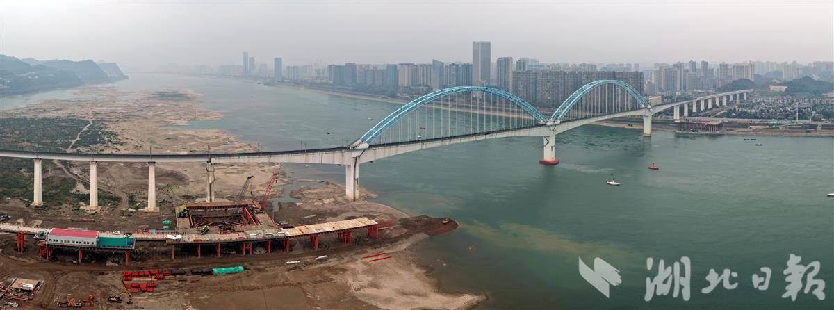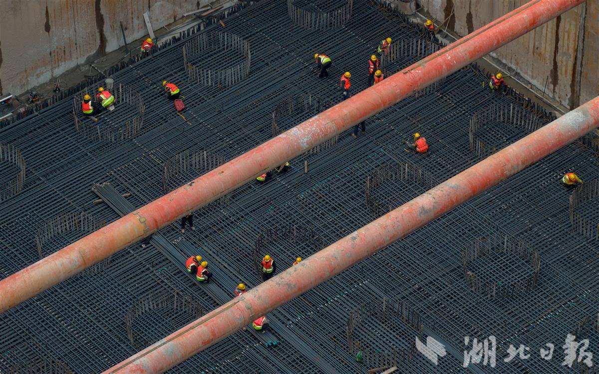 1月2日,宜昌长江公铁大桥建设工地一片繁忙,两岸主塔施工齐头并进。江北7号主塔将转入主塔塔身高空施工阶段。南岸8号主塔墩同步开展承台钢筋绑扎作业,为后续同步合龙奠定基础。