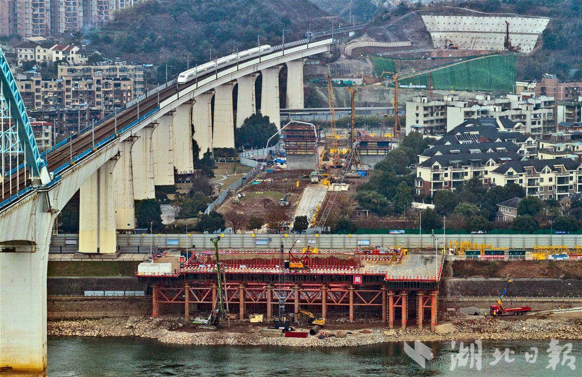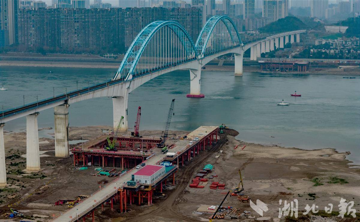 1月2日,宜昌长江公铁大桥建设工地一片繁忙,两岸主塔施工齐头并进。江北7号主塔将转入主塔塔身高空施工阶段;南岸8号主塔墩同步开展承台钢筋绑扎作业,为后续同步合龙奠定基础。宜昌长江公铁大桥正线全长2782米,设计上层为4线铁路,下层为6车道城市主干道,两侧还预留了2线城市轨道交通空间。该桥预计于2029年建成,届时将成为世界上铁路与轨道交通线数最多的公铁合建桥梁,对贯通长江南北、完善区域综合交通网络具有重要意义。(湖北日报全媒记者 刘曙松 摄)