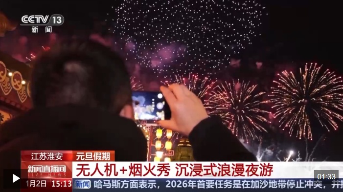 元旦假期,江苏淮安、安徽合肥、河北临漳等地,为延长游玩时间,在夜间推出了不同活动。无人机表演、烟花秀、新春灯会等,让人们在欢乐的氛围中,尽享多彩生活。