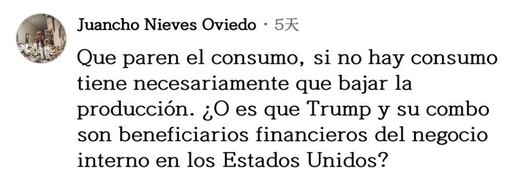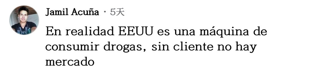 网友胡安乔·奥维多一针见血:“停止(毒品)消费吧,如果没人消费,生产必然下降。莫非特朗普和他的团队是美国国内毒品生意的受益者?”