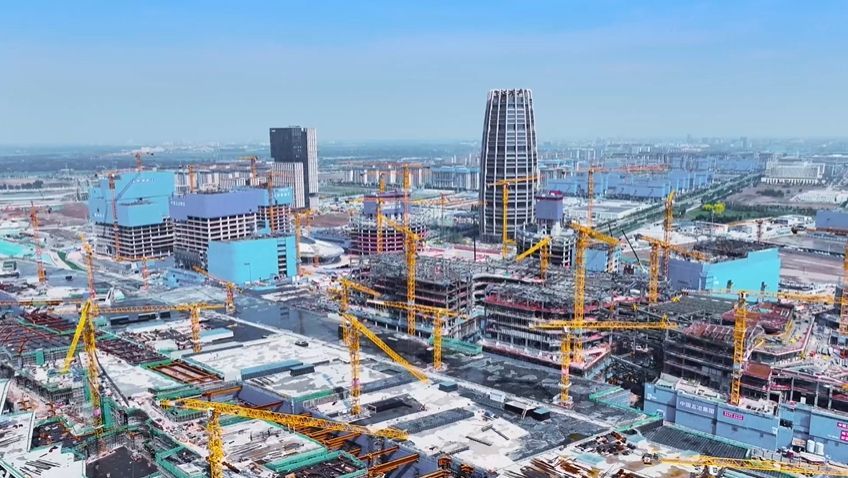 正在建设中的雄安城际站及国贸中心片区,位于雄安新区启动区的核心位置,由雄忻高铁雄安城际站、京雄快线航站楼站、国贸中心和东西轴线公共交通等组成。建成后,既有办公、商业、酒店、公寓,还有轨道交通、航空服务功能、生态文化旅游等,业态多元丰富。