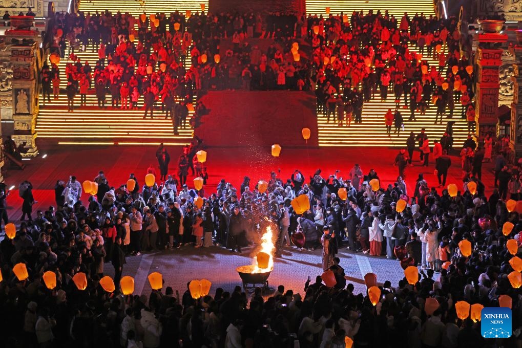 Tourists watch a performance at a heritage park in Luoyang, central China's Henan Province, Jan. 1, 2026. China's economy kicked off 2026 with robust momentum, as evidenced by bustling economic activity in the year's first days. (Photo by Huang Zhengwei/Xinhua)