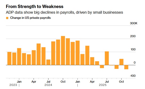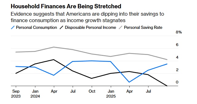 文章认为,美国家庭财务状况日趋紧张。文章称,有证据表明,随着收入增长陷入停滞,美国人正动用储蓄来维持消费支出。此外,当政策走向难以预测时,企业几乎无法制定可靠的经营计划。文章援引美国杜克大学和里士满联邦储备银行对全美首席财务官的最新调查显示,当前商界对经济前景并不乐观。作为就业增长引擎的小型企业正面临严峻挑战。文章援引美国一家公司发布的数据称,去年11月,无论是商品生产还是服务行业的私营企业都在大规模裁员。其中员工规模少于50人的企业削减了12万个岗位,创下自2020年5月以来最大的单月裁员纪录。