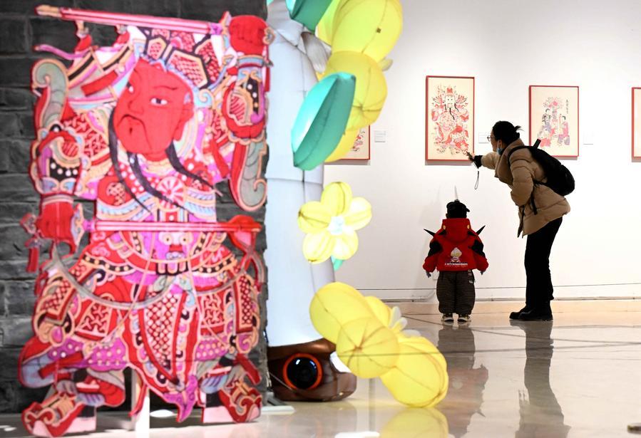 People visit an exhibition themed on nianhua, a type of centuries-old Chinese woodcut New Year picture, at the Shijiazhuang Art Museum in Shijiazhuang, north China's Hebei Province, Jan. 2, 2026. Diverse exhibitions staged at museums, galleries and other cultural institutions across the country have greatly enriched people's life during the New Year holiday. (Photo by Chen Qibao/Xinhua)
