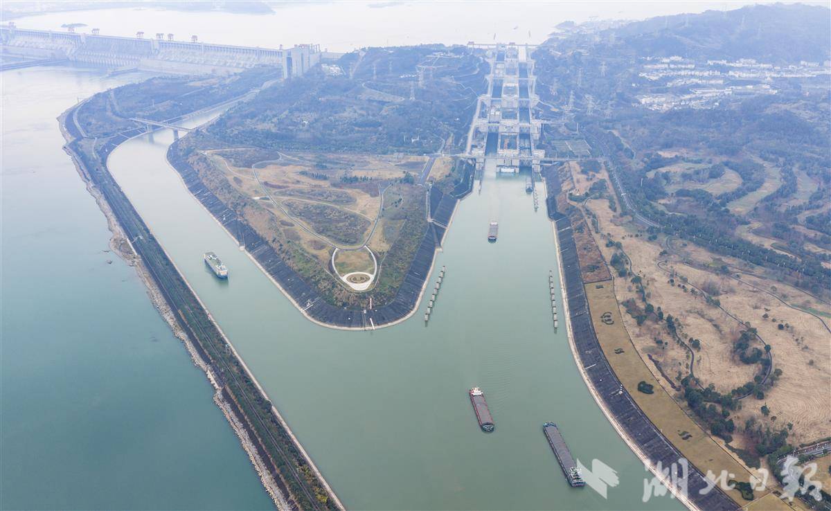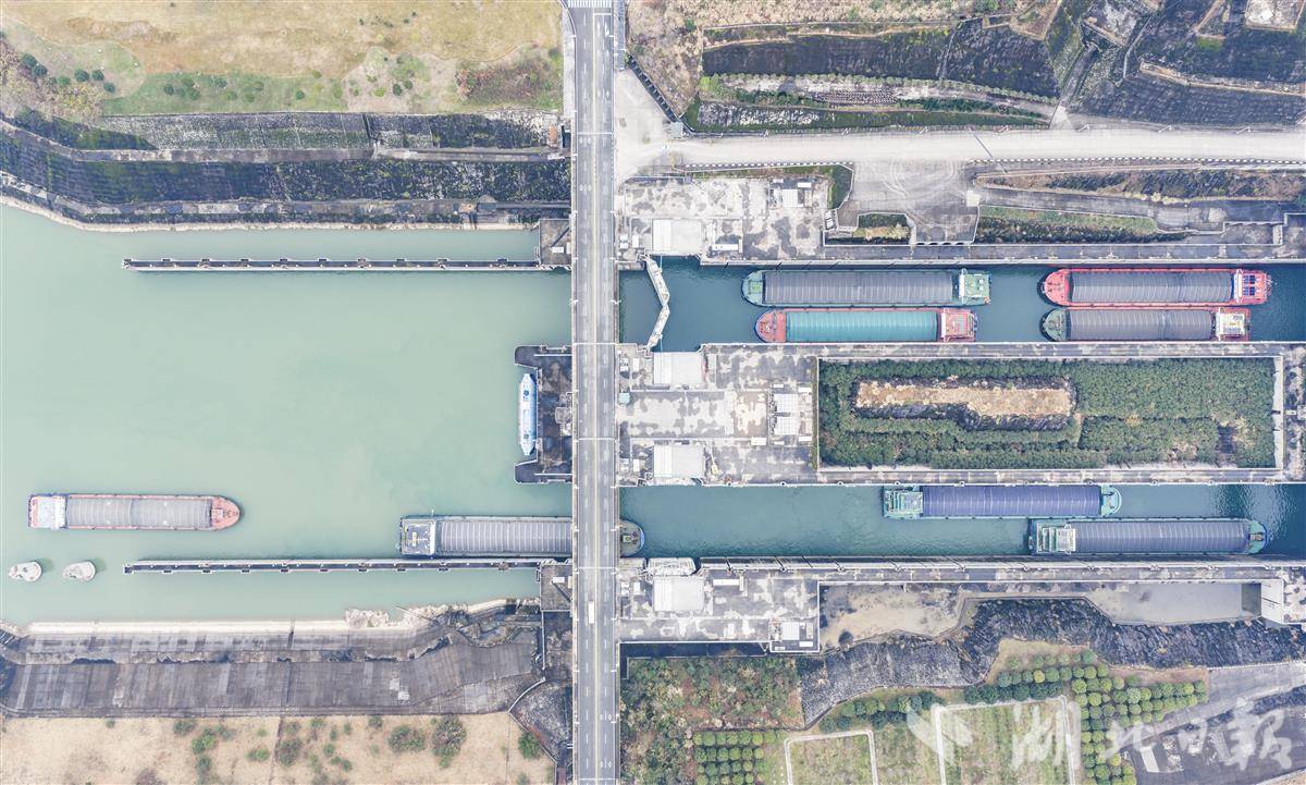 1月1日,船舶有序通过三峡双线五级船闸和升船机。长江三峡通航管理局最新统计数据显示,2025年三峡枢纽共运行14415闸(厢)次,年通过量1.73亿吨,同比增长8.66%。其中三峡船闸年通过量1.7亿吨,三峡升船机年客运量63.2万人次,双创历史新高。共保障4614.48万吨民生物资安全便捷过坝,为沿江钢铁、能源、化工、汽车等产业的原材料运输和产品输出,沿江人民生产生活需求提供了高效、经济、绿色的物流通道,直接助力长江经济带产业布局与区域经济联动。(视界网 郑家裕 摄)