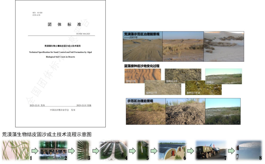 湖北日报讯(记者李玉麟、通讯员李华)近日,由中国科学院水生生物研究所联合中国治沙暨沙业学会牵头制订的《荒漠藻生物土壤结皮固沙成土技术规范》(T/CNSC 004-2025)正式发布实施。这是我国首部针对荒漠藻人工生物结皮技术的全国性规范,标志着我国荒漠藻治沙技术从科研积累、工程实践迈向规模化、可复制化新阶段。