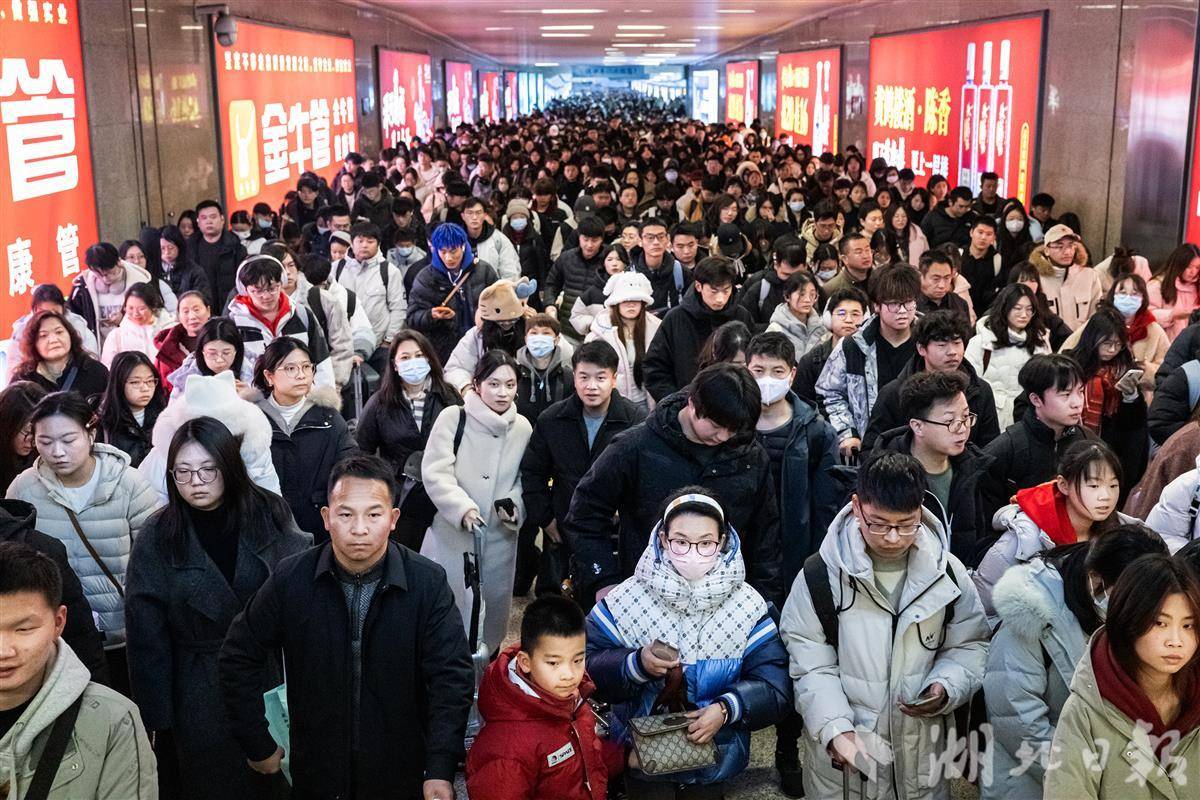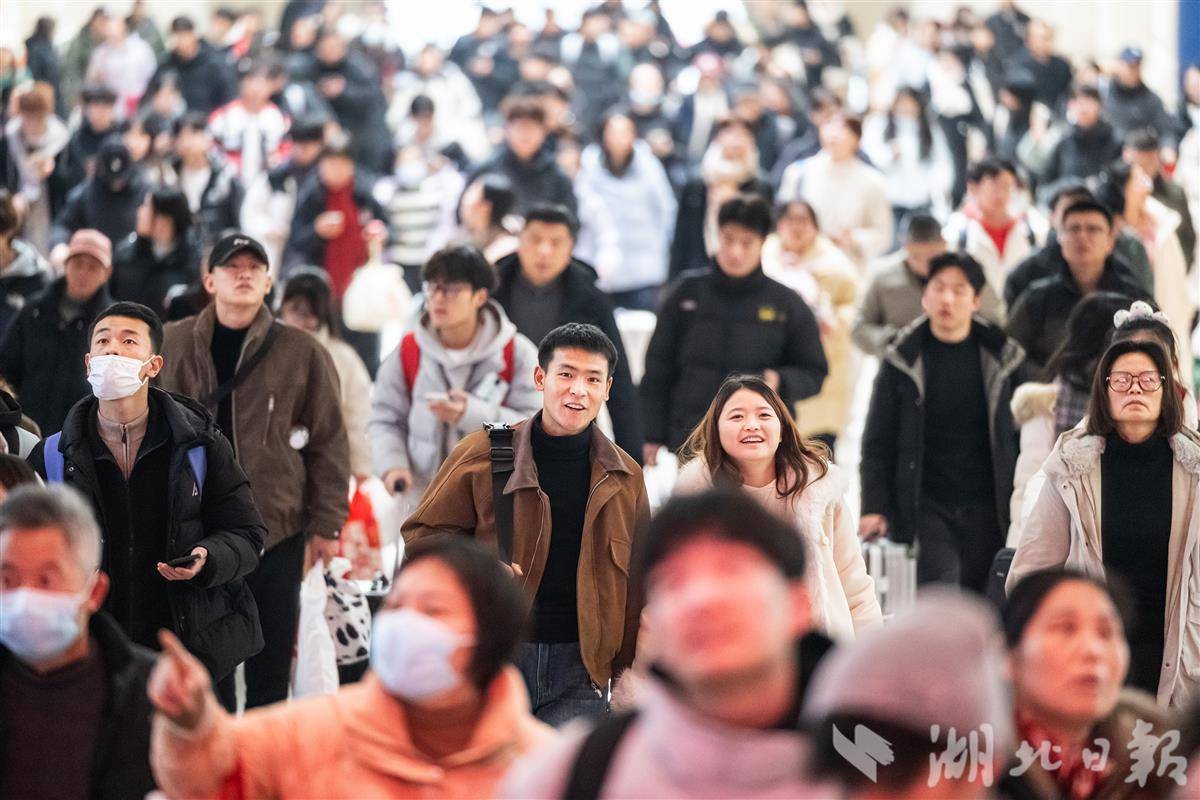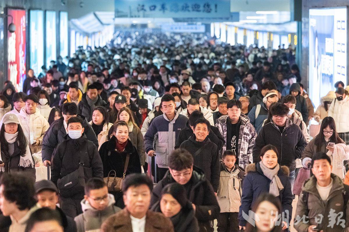 1月3日,汉口火车站迎来返程客流高峰,旅客到达汉口站后有序出站。(湖北日报全媒记者 任勇 通讯员 宋萍 席珊珊 摄)