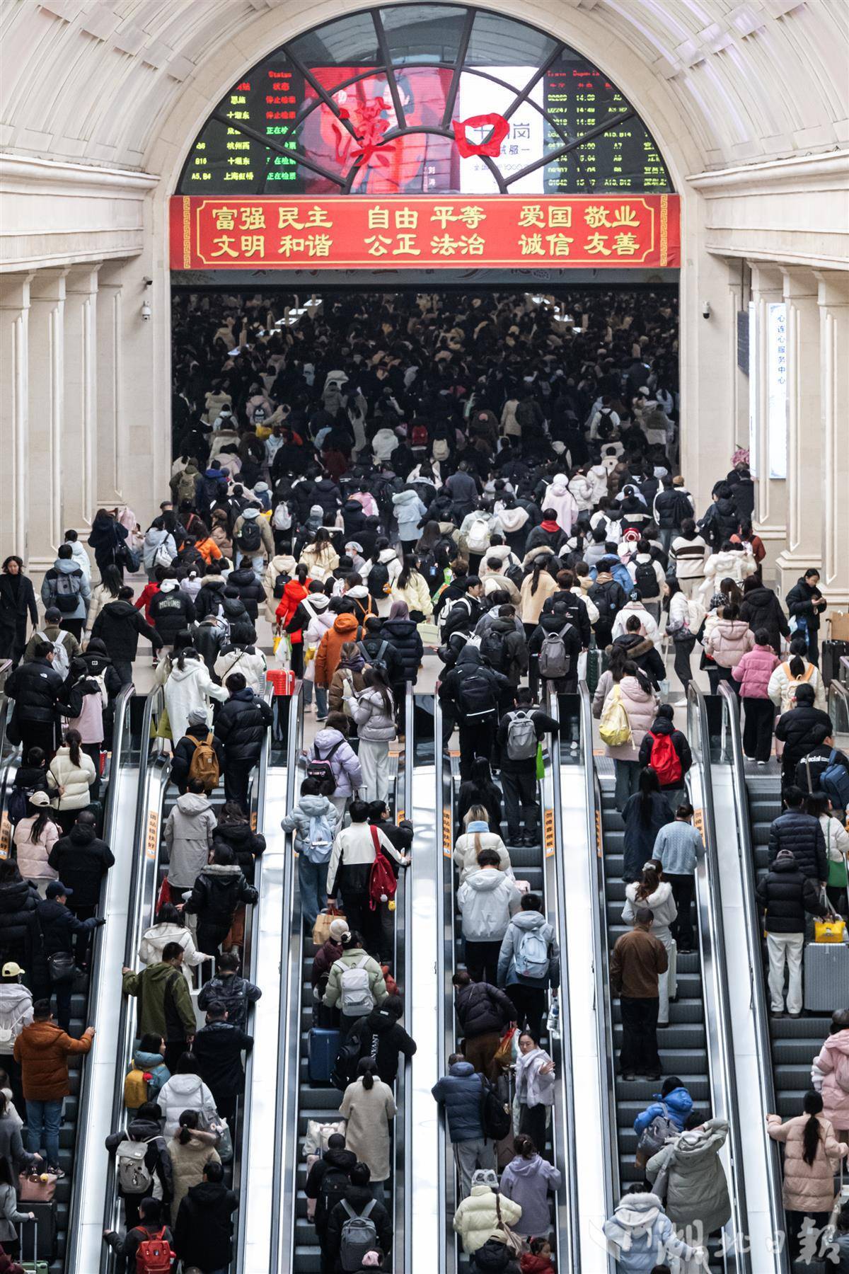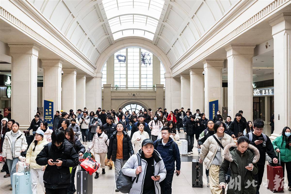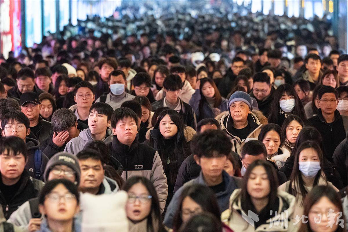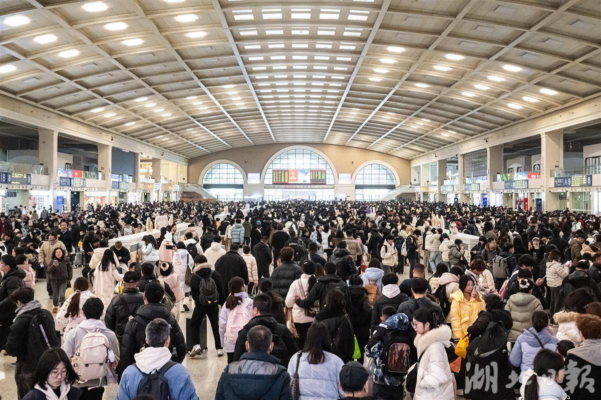 1月3日,汉口火车站迎来返程客流高峰。(湖北日报全媒记者 任勇 通讯员 宋萍 席珊珊 摄)