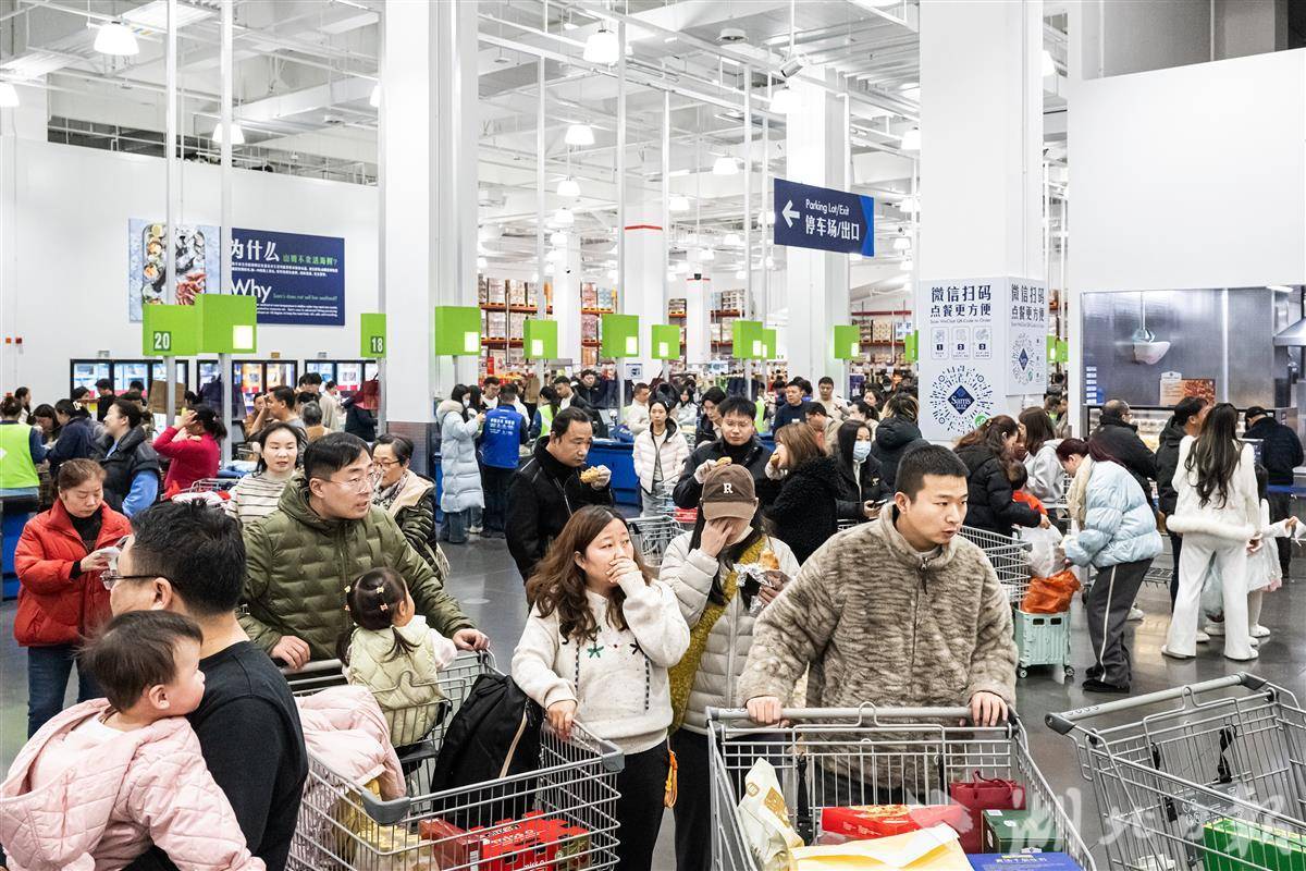 1月3日,山姆会员商店武汉江岸店内人头攒动,热闹非凡,不少市民趁着假期的最后一天前来购物、消费。1月对于商超、零售企业而言是全年开局的“黄金月”,元旦节日消费叠加春节年货采购,带动消费市场持续升温。(湖北日报全媒记者 任勇 摄)