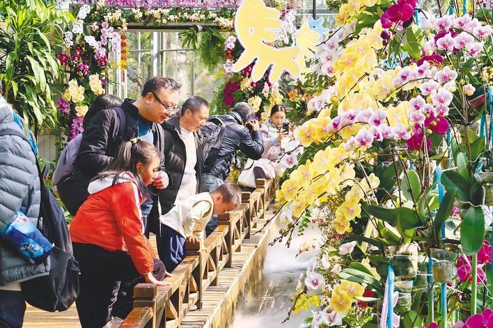 1月3日,武汉植物园的新春热带兰花展吸引八方来客。以“23℃花屋 兰驻时光”为主题的展区里,上万株蝴蝶兰、石斛兰等逾百种热带兰花盛放,打造沉浸式赏花空间。游客步入其中,便能穿越冬日寒意,尽享兰香萦绕的温暖绚烂。(湖北日报全媒记者 陈少哲 摄)