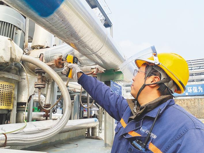 工人正在云图磷化工产业园项目现场巡查设备。 (湖北日报全媒记者 张源 摄)