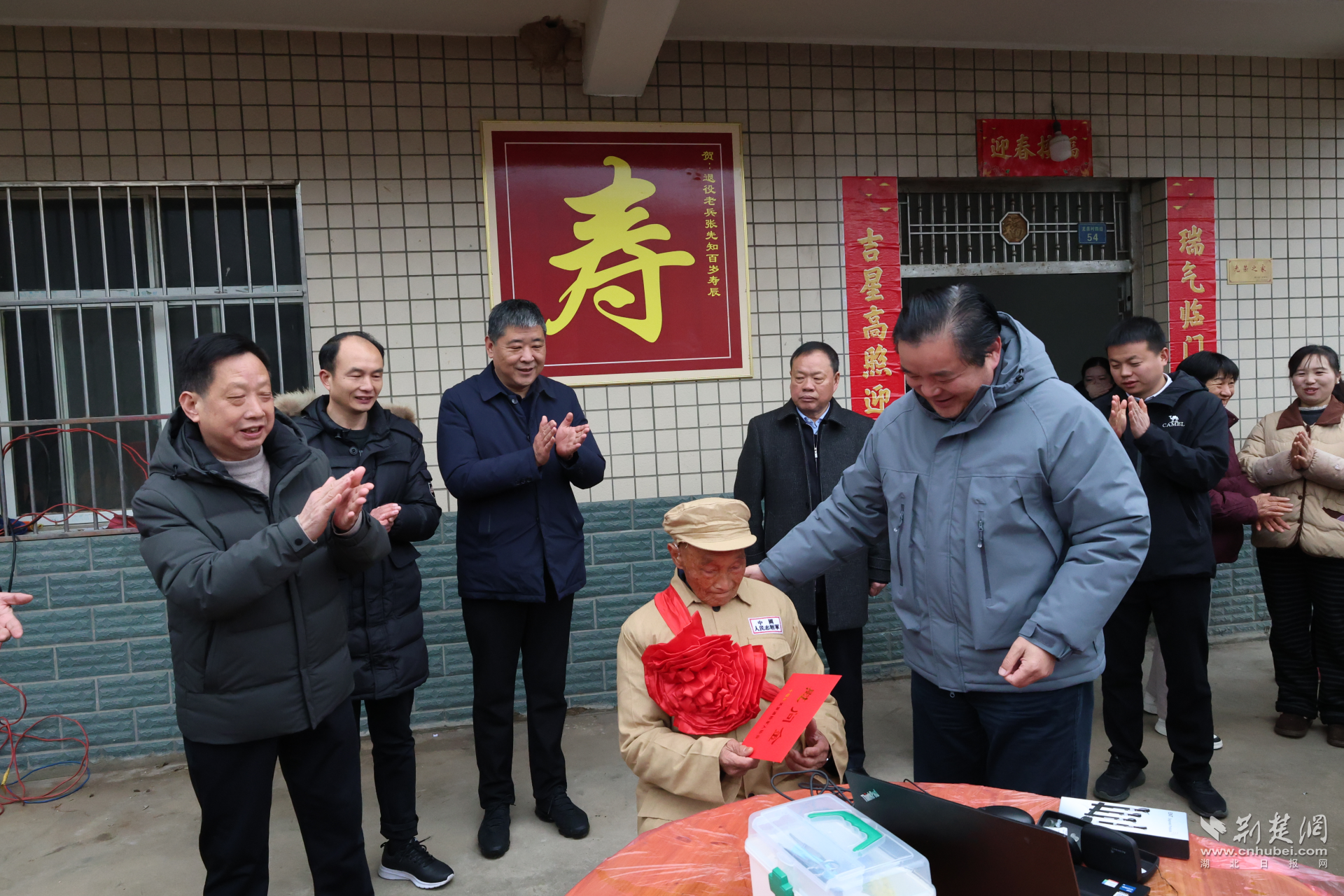 荆楚网(湖北日报网)讯(通讯员 常梦星)1月3日,十堰市郧阳区谭家湾镇龙泉村格外温暖。这一天,退役老兵张先知迎来了他的百岁寿辰。十堰市、区两级关爱退役军人协会的代表专程来到老人家中,为他庆贺生日,也传递着党和政府以及全社会对退役军人的深深敬意与关怀。