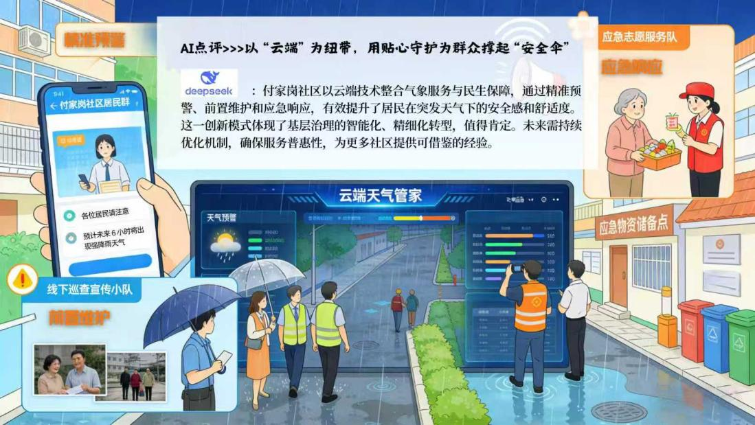 民生无小事,枝叶总关情。付家岗社区以“时时放心不下”的责任感,用数字化手段赋能基层治理,让“云端天气管家”更贴心、更高效。下一步,社区将持续完善服务模式与工作机制,不断提升应对各类天气变化的服务能力,用扎实的行动守护群众晴天雨天无忧、一年四季舒适,让网上群众路线在民生保障的实践中越走越宽。