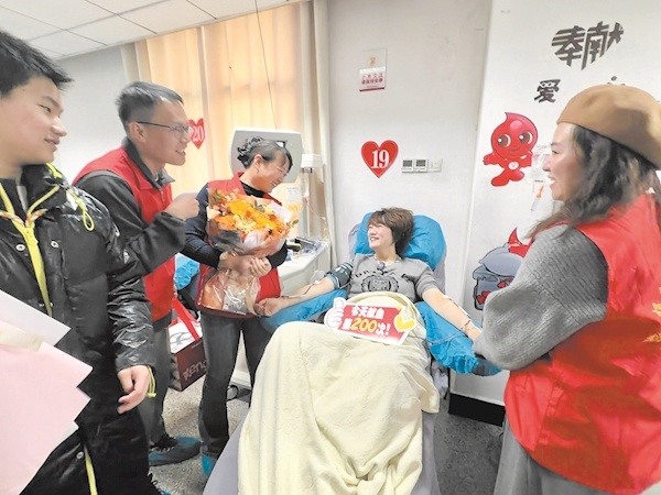 志愿者小伙伴惊喜现身,见证胡倩华第200次献血