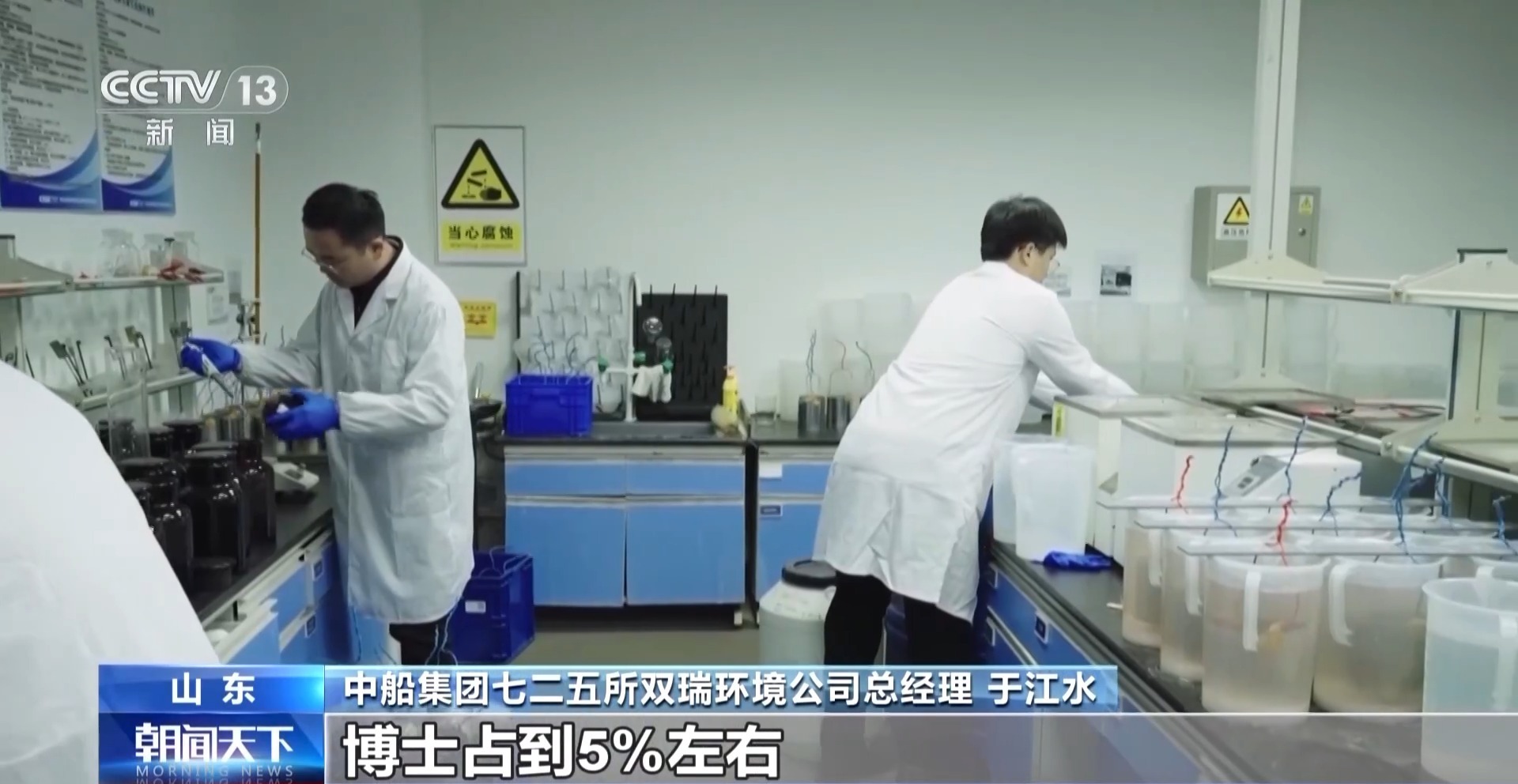中船集团七二五所双瑞环境公司研发高级工程师 王兴兆:我学的是新能源材料,希望通过我们团队的技术创新,研发出更多的新能源装备产品,并且推广应用到更多的船舶上,从而助力全球航运业的绿色低碳、智能化转型。