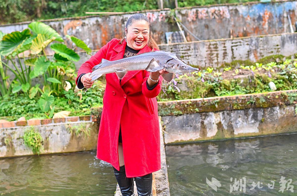 2016年,政府号召转型,1300多家土纸厂都动起来,百年流传的落后产业在青山绿水前退步,换个活法,成为摆在全镇人面前最紧迫的事。土纸厂老板刘永珍最终选择了冷水养鱼,如今,她早已脱贫致富,成为大家口中的“娃娃鱼”阿姨、当地小有名气的致富带头人,靠着淡水养殖,每年的收入在40万元左右。(湖北日报全媒记者 朱熙勇 摄)