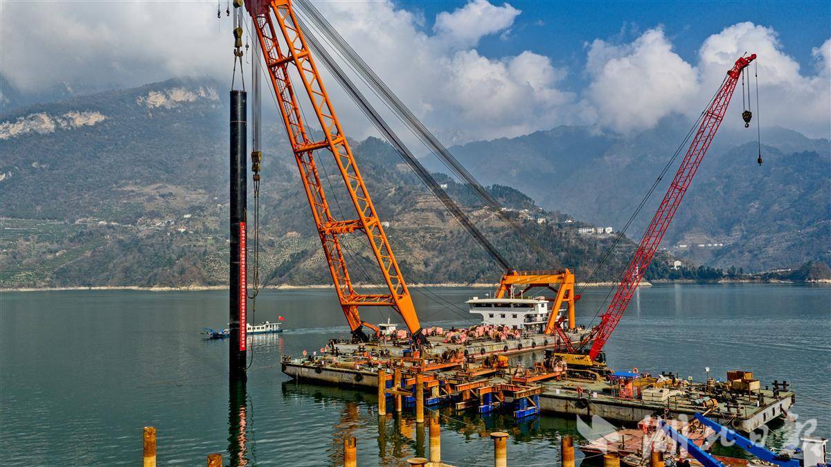 项目团队采用800吨起重船双钩起吊翻身方案,通过三维模拟推演化解空间受限风险;创新融合实时监测与动态调控技术,构建数字化立体监测体系,形成闭环控制,最终实现钢护筒毫米级精准安装。(湖北日报全媒记者 刘曙松 通讯员 彭强 摄)